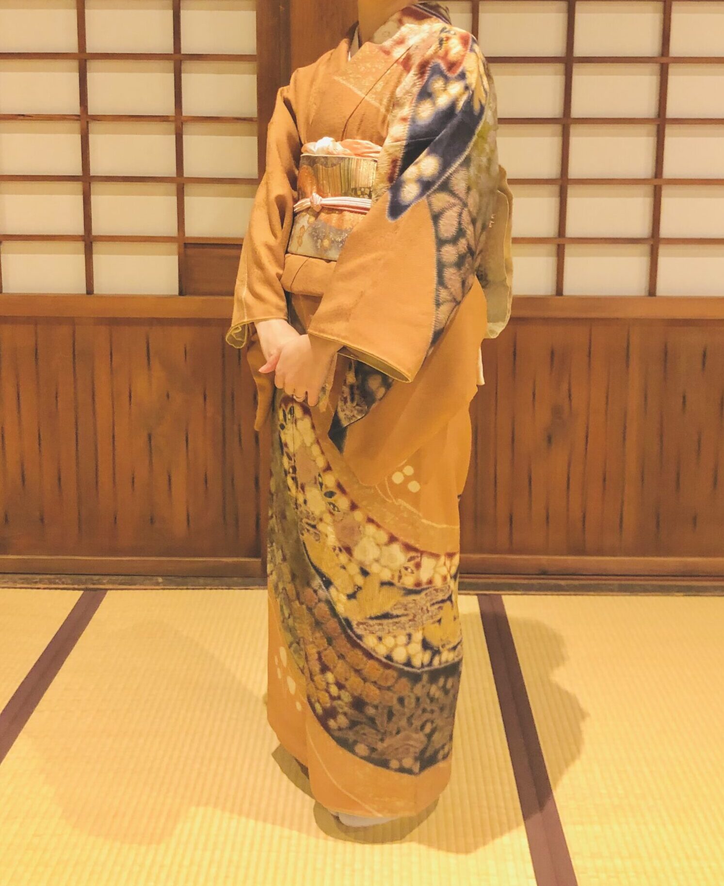 そうした違和感は全部仕立て直すのではなく、着物は「部分的なサイズのお直し」で変わる場合が多くあります。完全に自分の寸法に直せないこともありますが、できるだけ近づけることで着物が着やすくなり、生まれ変わります。